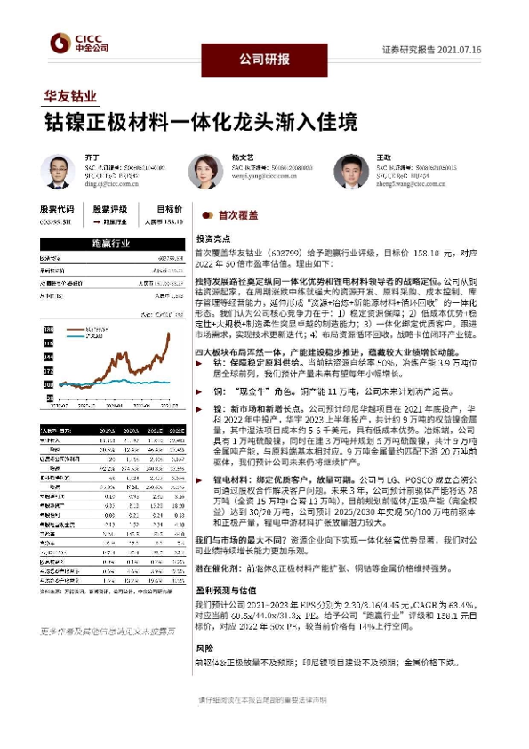 【中金公司】【20210716】华友钴业-603799.SH-钴镍正极材料一体化龙头渐入佳境-32页