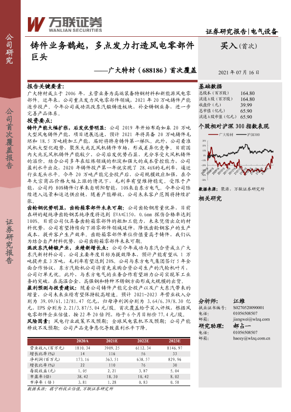 【万联证券】【20210716】铸件业务鹊起,多点发力打造风电零部件巨头-27页