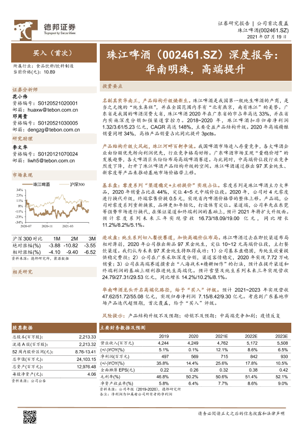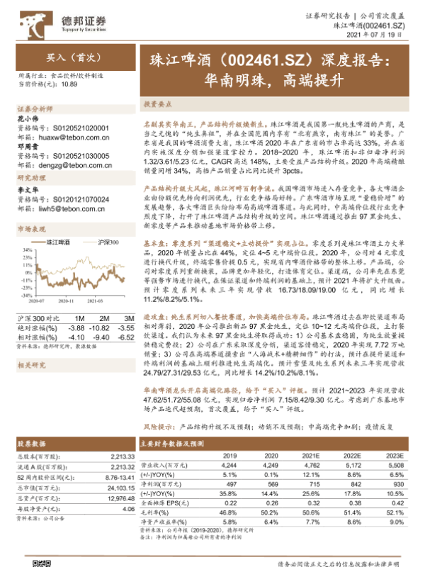 【德邦证券】【20210719】20210719-德邦证券-珠江啤酒-002461.SZ-深度报告:华南明珠,高端提升-23页