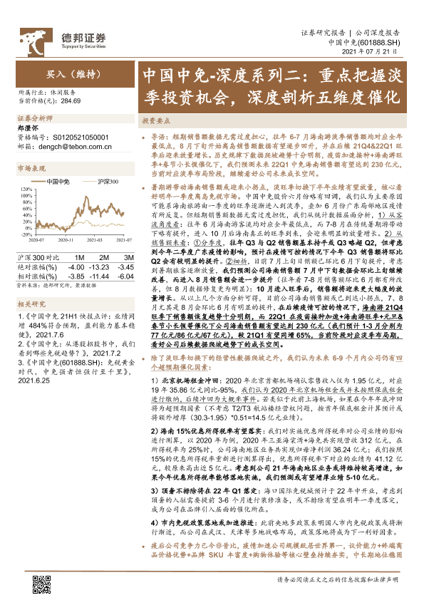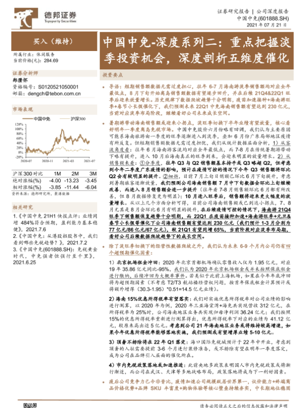 【德邦证券】【20210721】中国中免-深度系列二:重点把握淡季投资机会,深度剖析五维度催化-21页