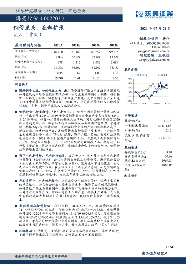 【东吴证券】【20210721】20210721-东吴证券-海亮股份-002203.SZ-铜管龙头,底部扩张-24页