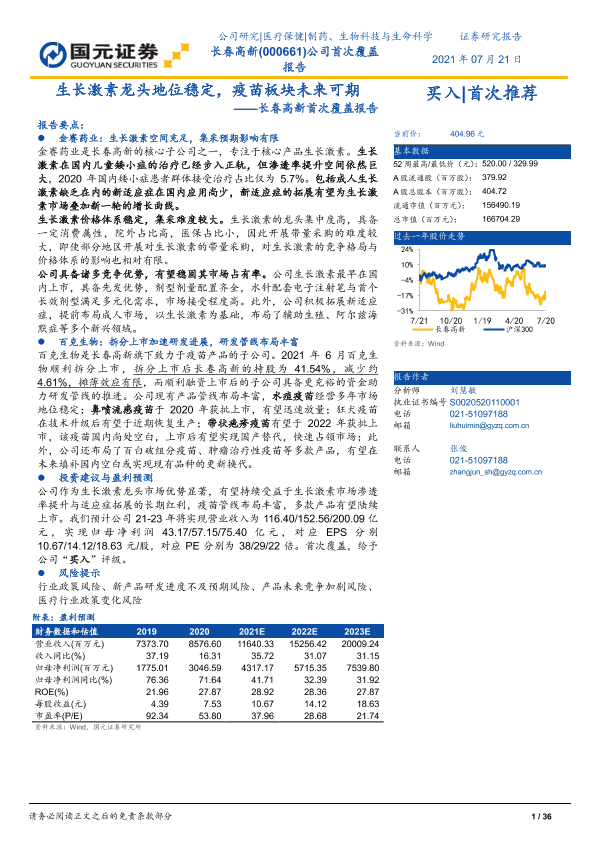 【国元证券】【20210721】长春高新首次覆盖报告:生长激素龙头地位稳定,疫苗板块未来可期-36页