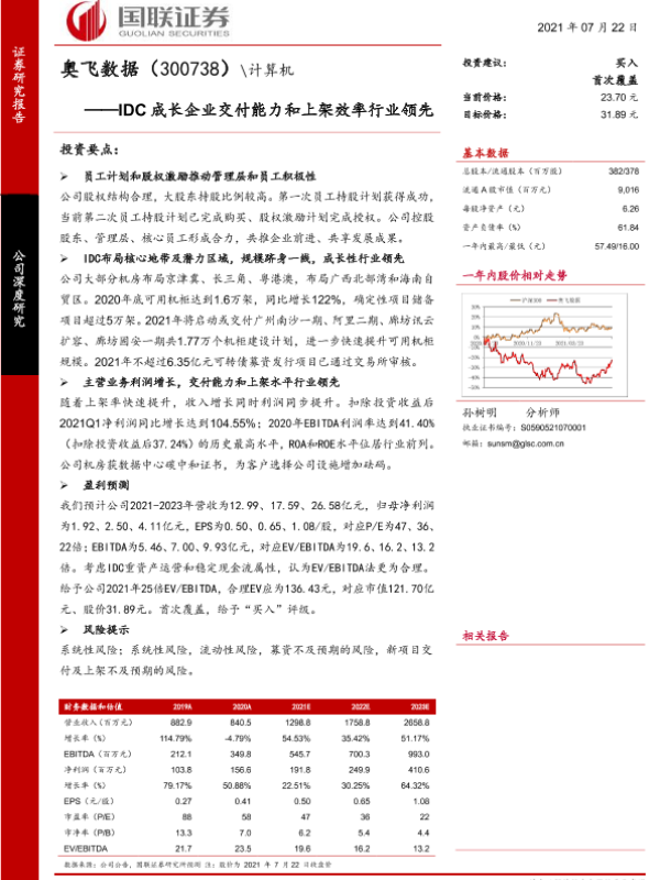 【国联证券】【20210722】奥飞数据(300738)—IDC成长企业交付能力和上架效率行业领先-27页