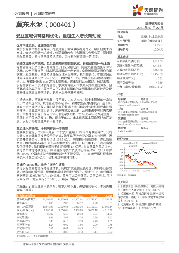 【天风证券】【20210722】冀东水泥-受益区域供需格局优化,重组注入增长新动能-21页