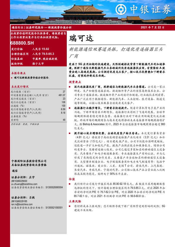 【中银证券】【20210722】瑞可达-688800.SH-新能源通信双赛道共振,打造优质连接器巨头厂商-44页