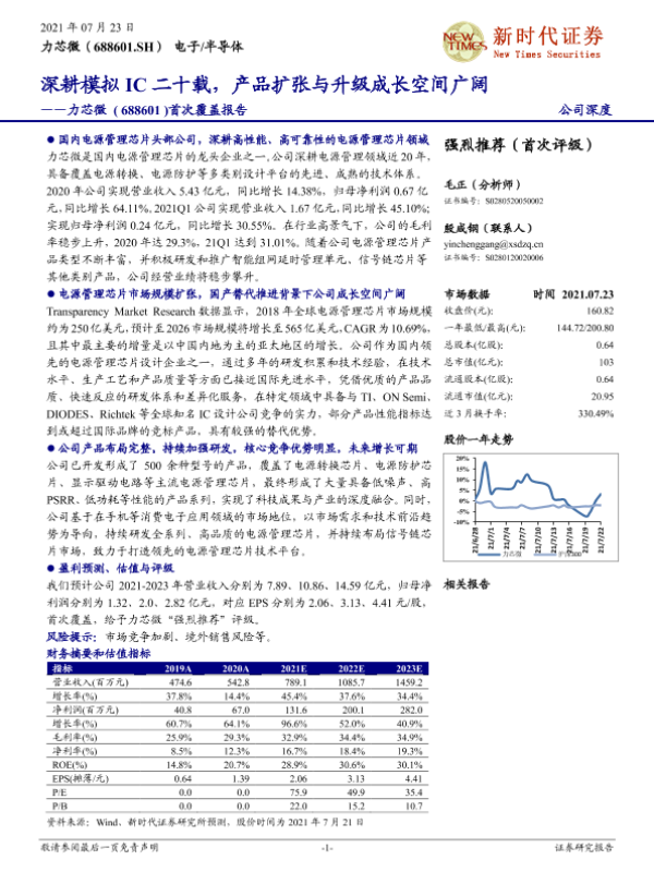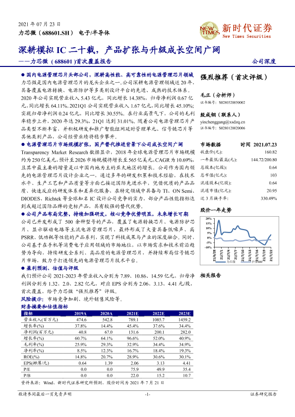【新时代证券】【20210723】20210723-新时代证券-力芯微-688601.SH-首次覆盖报告:深耕模拟IC二十载,产品扩张与升级成长空间广阔-43页