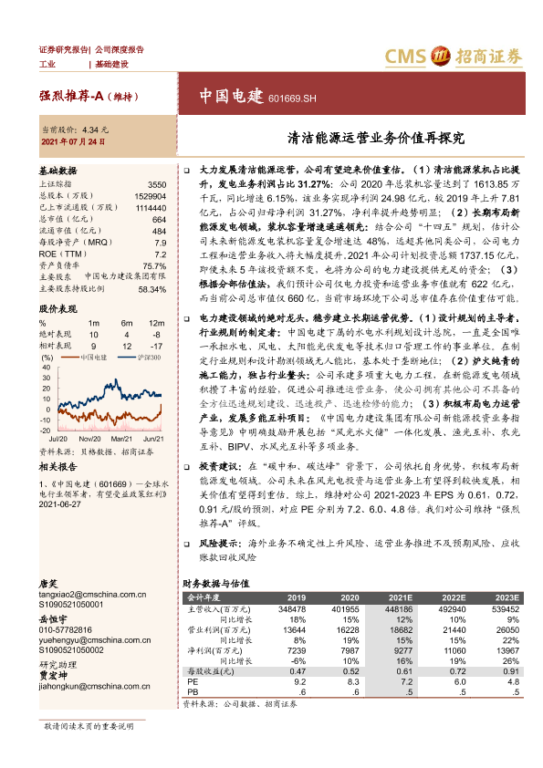 【海通证券】【20210724】中国电建-601669.SH-清洁能源运营业务价值再探究-22页