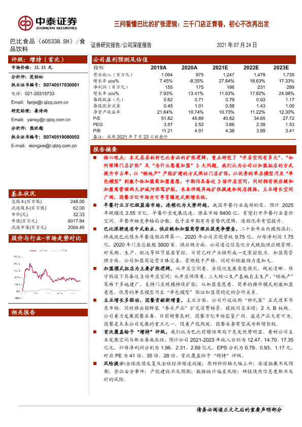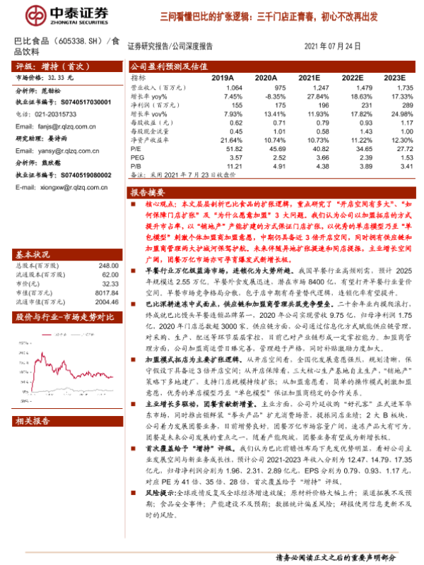 【中泰证券】【20210724】三问看懂巴比的扩张逻辑:三千门店正青春,初心不改再出发-36页