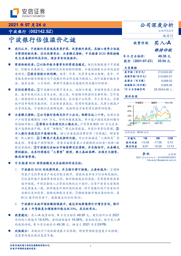 【安信证券】【20210724】宁波银行估值溢价之谜-53页