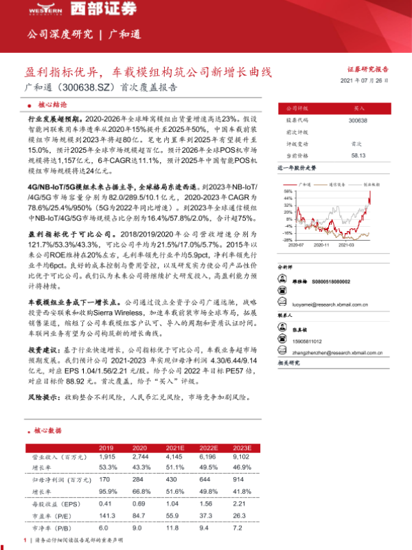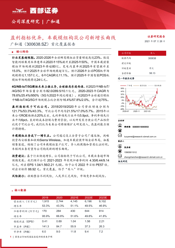 广和通 物联网 盈利指标 车载模组 首次覆盖报告
