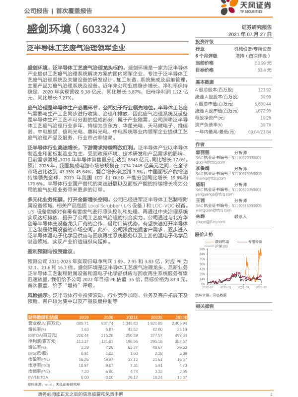 【天风证券】【20210727】20210727-天风证券-盛剑环境-603324.SH-泛半导体工艺废气治理领军企业-22页