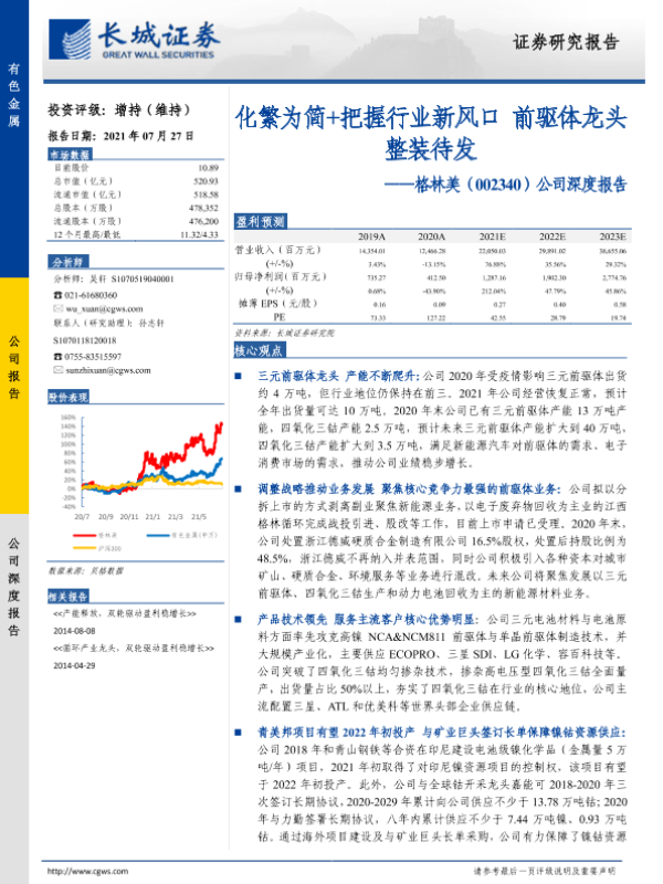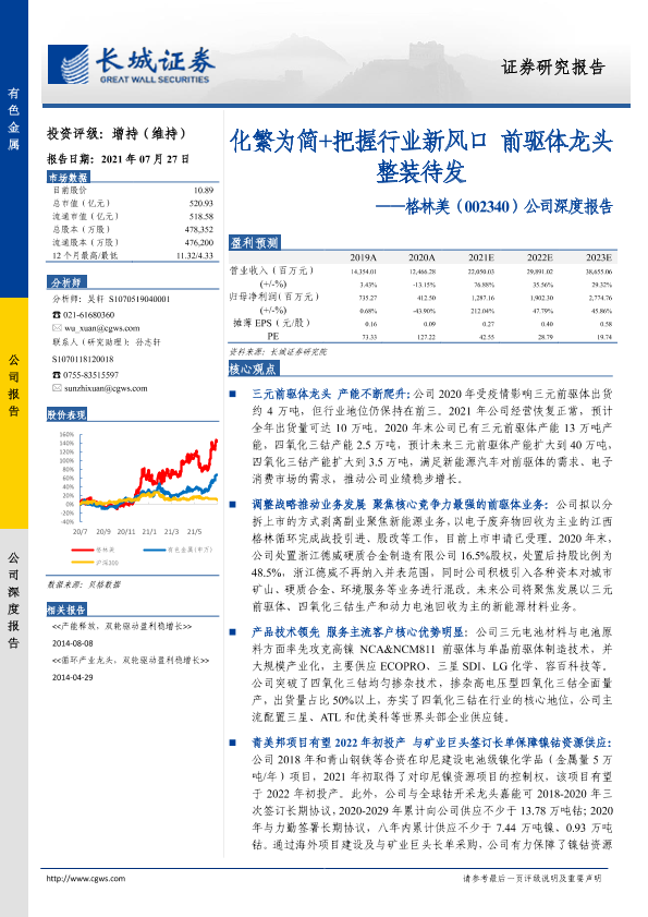 【长城证券】【20210727】20210727-长城证券-格林美-002340.SZ-公司深度报告:化繁为简+把握行业新风口 前驱体龙头整装待发-25页