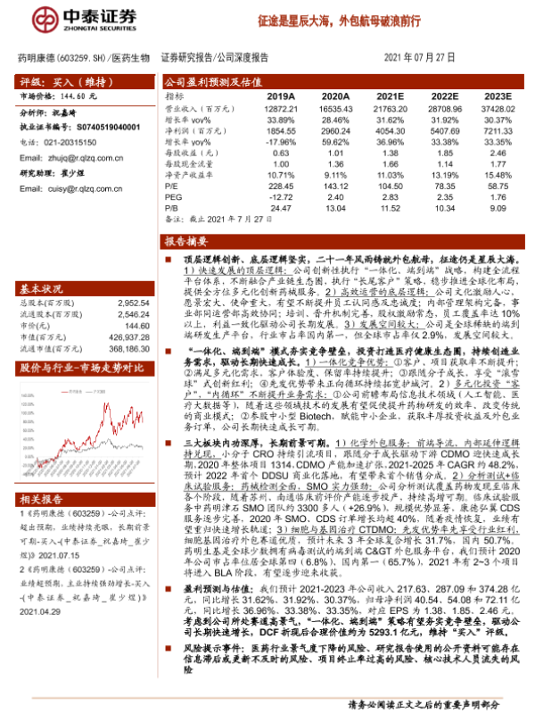 【中泰证券】【20210727】20210727-中泰证券-药明康德-603259.SH-征途是星辰大海,外包航母破浪前行-51页