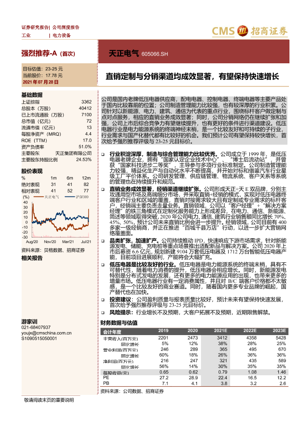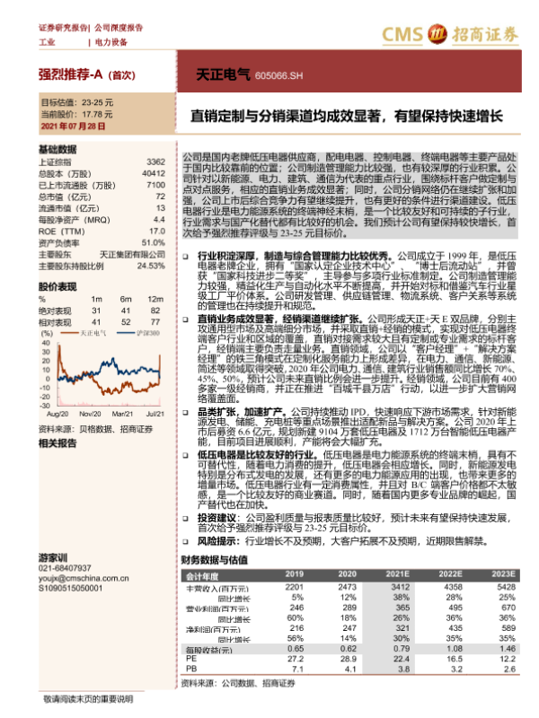 【海通证券】【20210728】天正电气-直销定制与分销渠道均成效显著,有望保持快速增长-28页