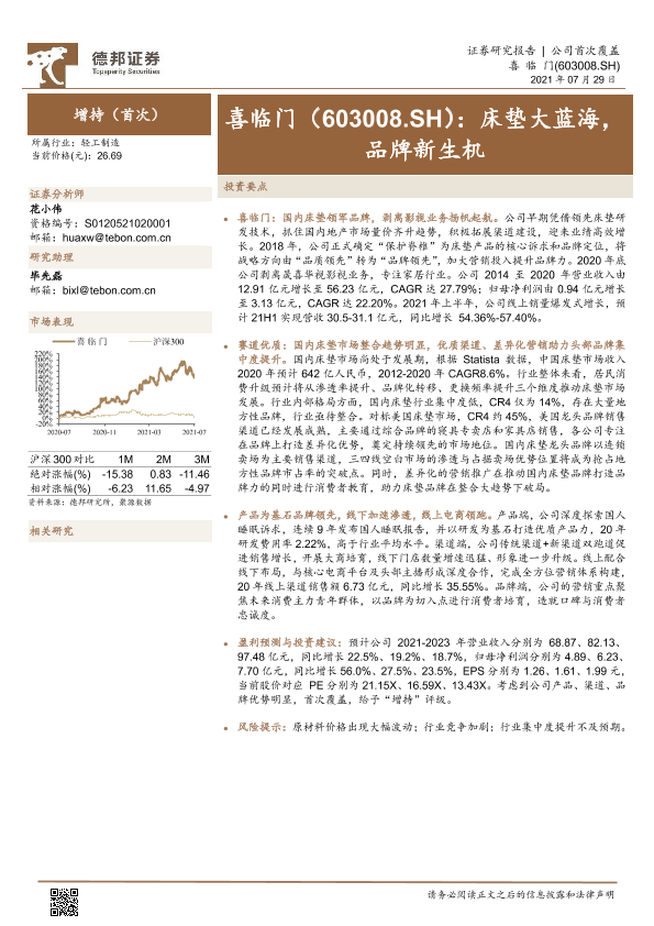 【德邦证券】【20210729】20210729-德邦证券-喜临门-603008.SH-床垫大蓝海,品牌新生机-27页