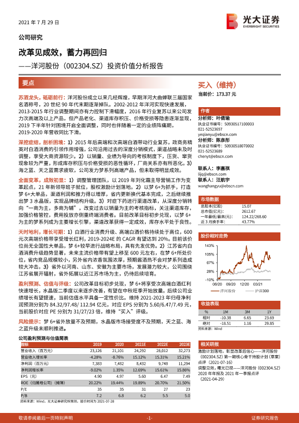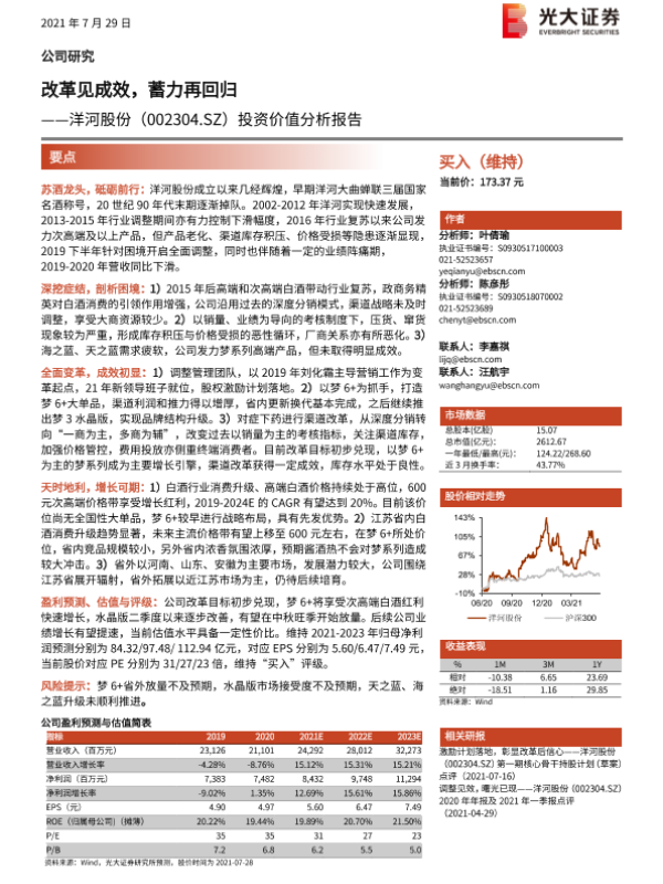 【光大证券】【20210729】改革见成效,蓄力再回归——洋河股份(002304.SZ)投资价值分析报告-35页