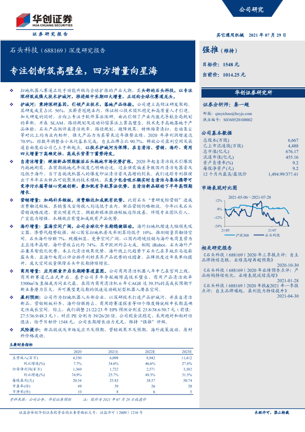 【华创证券】【20210729】20210729-华创证券-石头科技-688169.SH-深度研究报告:专注创新筑高壁垒,四方增量向星海-50页