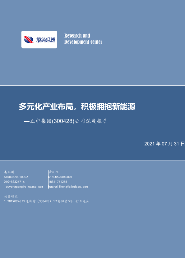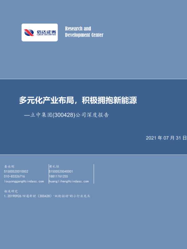 【信达证券】【20210731】20210731-信达证券-立中集团-300428.SZ-公司深度报告:多元化产业布局,积极拥抱新能源-27页