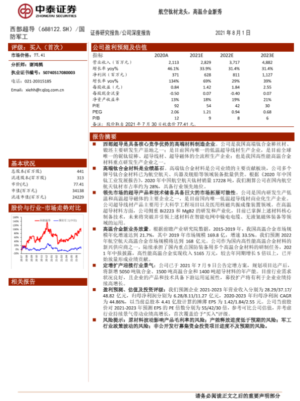 【中泰证券】【20210801】20210801-中泰证券-西部超导-688122.SH-航空钛材龙头,高温合金新秀-19页