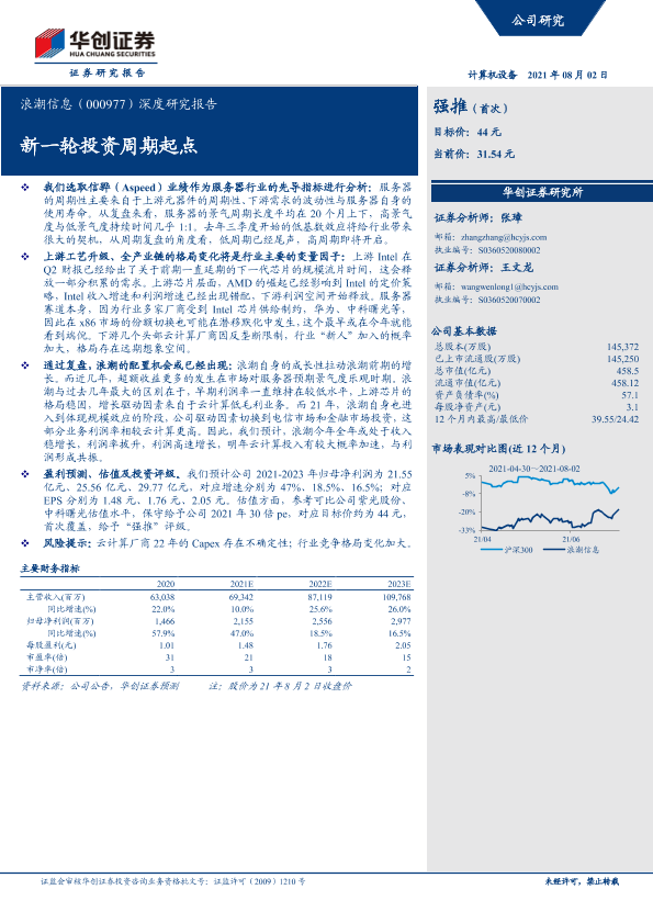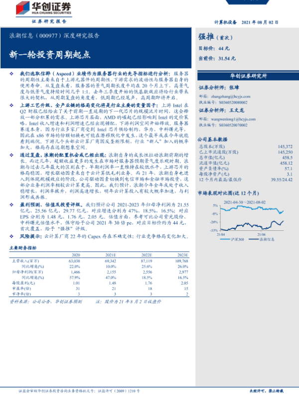 【华创证券】【20210802】20210802-华创证券-浪潮信息-000977.SZ-深度研究报告:新一轮投资周期起点-20页