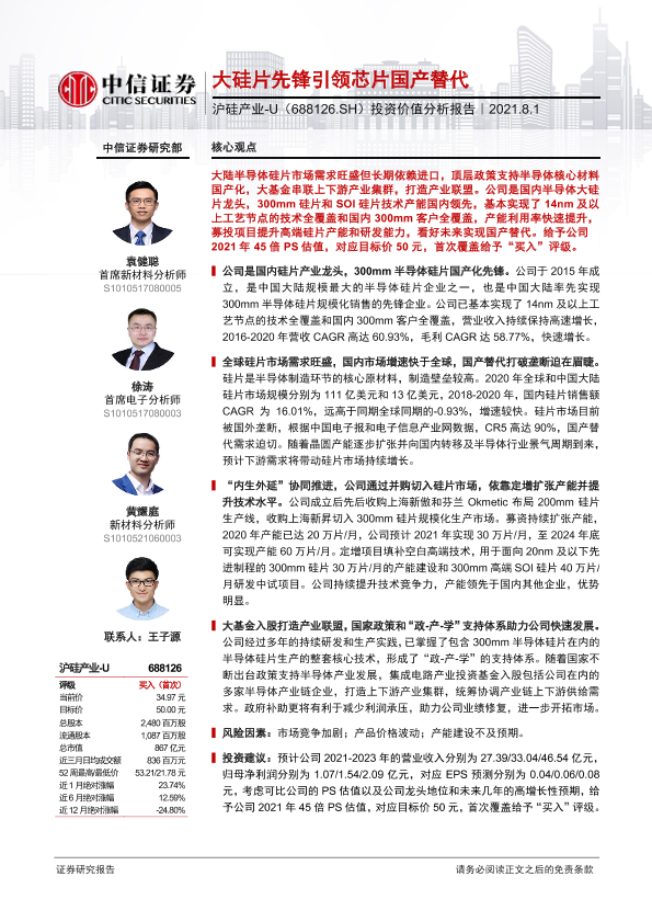 【中信证券】【20210801】大硅片先锋引领芯片国产替代-53页
