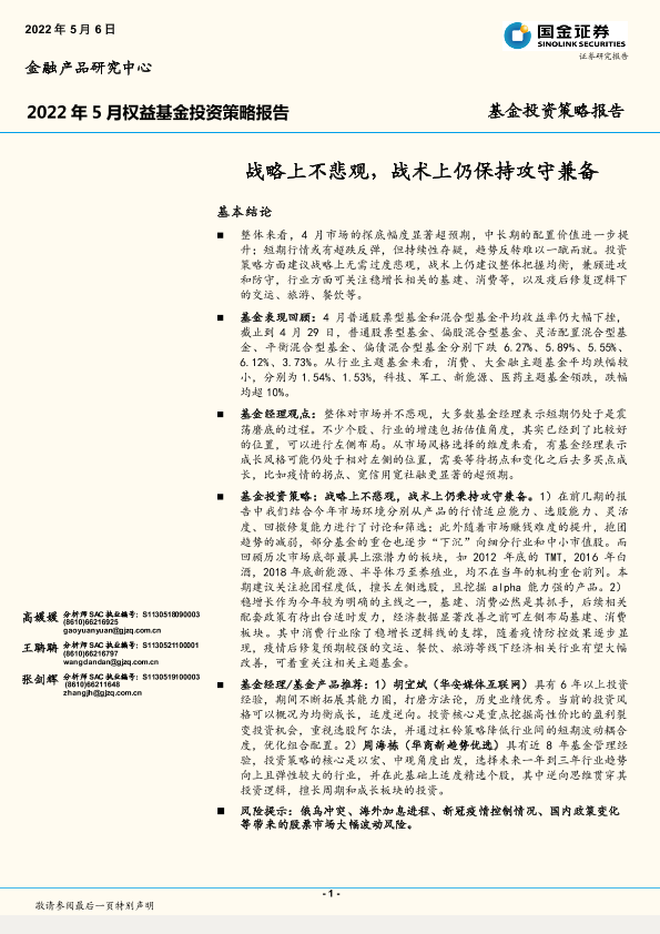 【国金证券】【20220506】2022年5月权益基金投资策略报告-20页