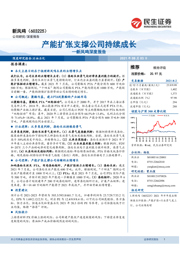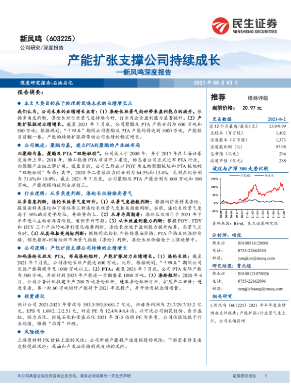 【民生证券】【20210803】新凤鸣深度报告:产能扩张支撑公司持续成长-36页