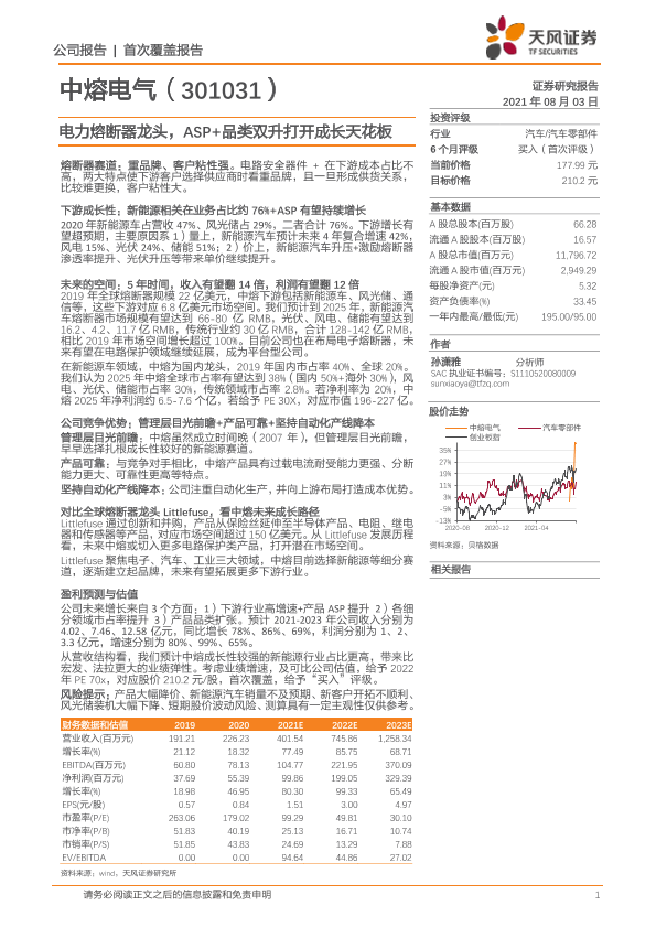【天风证券】【20210803】中熔电气-301031.SZ-电力熔断器龙头,ASP+品类双升打开成长天花板-23页