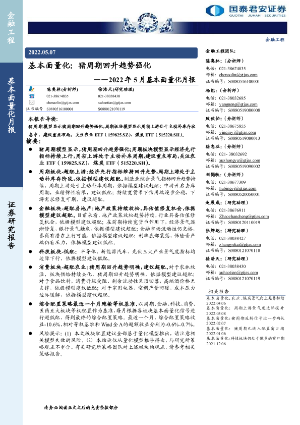 【国泰君安证券】【20220507】2022年5月基本面量化月报:基本面量化,猪周期回升趋势强化-23页