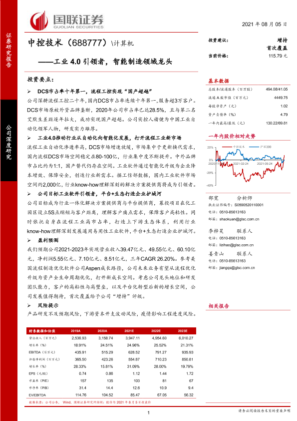 【国联证券】【20210805】中控技术:工业4.0引领者,智能制造领域龙头-29页