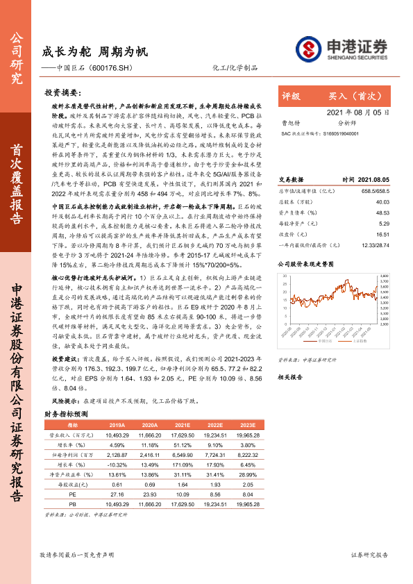 【申港证券】【20210805】成长为舵 周期为帆——中国巨石(600176.SH)-20页