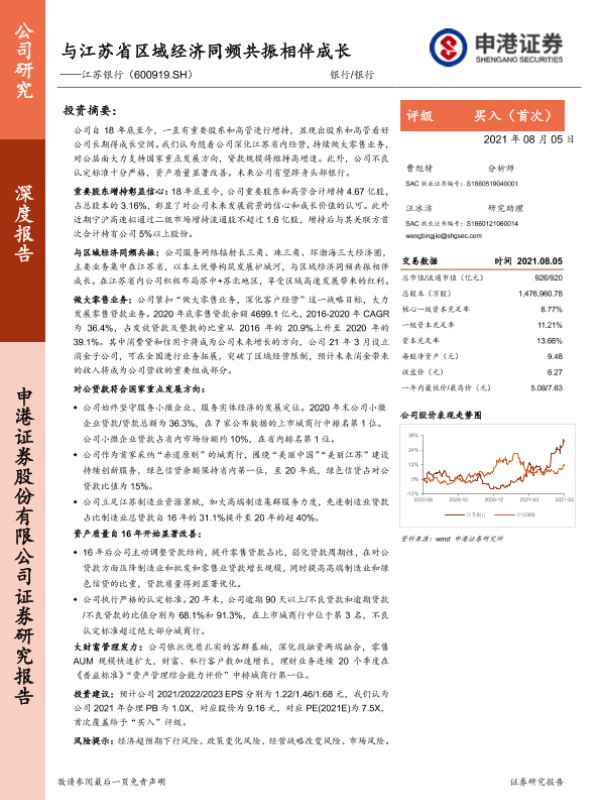 【申港证券】【20210805】江苏银行:与江苏省区域经济同频共振相伴成长-25页