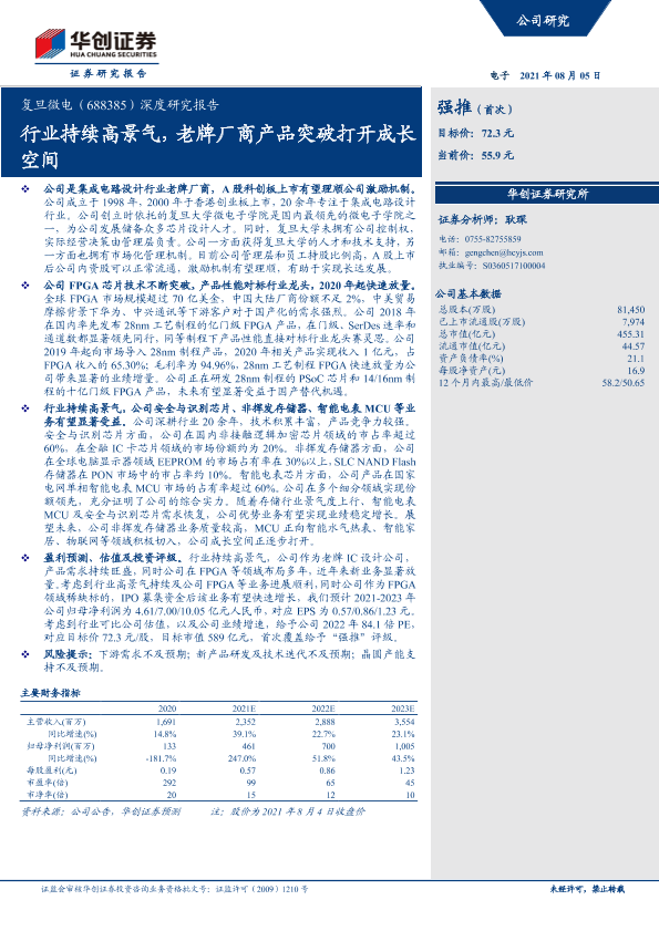 【华创证券】【20210805】20210805-华创证券-复旦微电-688385.SH-深度研究报告:行业持续高景气,老牌厂商产品突破打开成长空间-37页