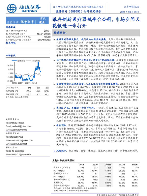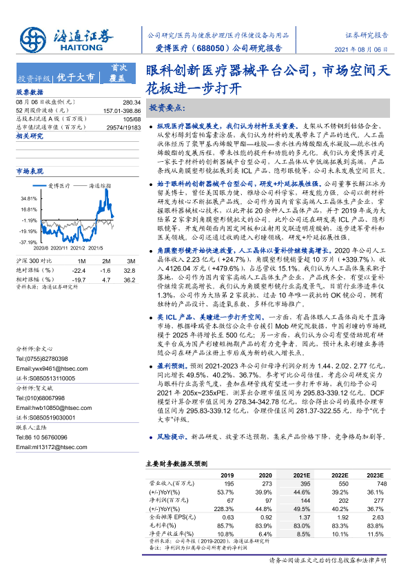 【海通证券】【20210806】爱博医疗-688050.SH-眼科创新医疗器械平台公司,市场空间天花板进一步打开-38页