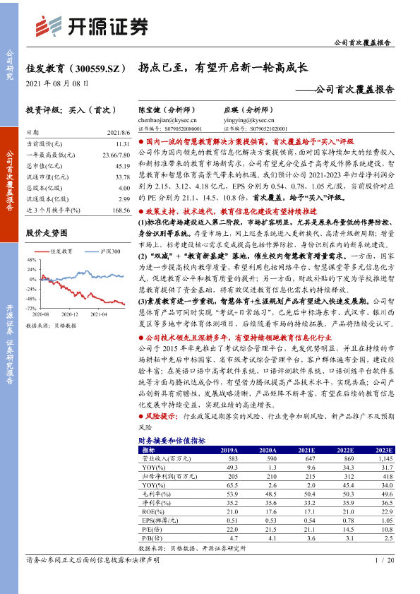 【开源证券】【20210808】佳发教育-公司首次覆盖报告:拐点已至,有望开启新一轮高成长-20页