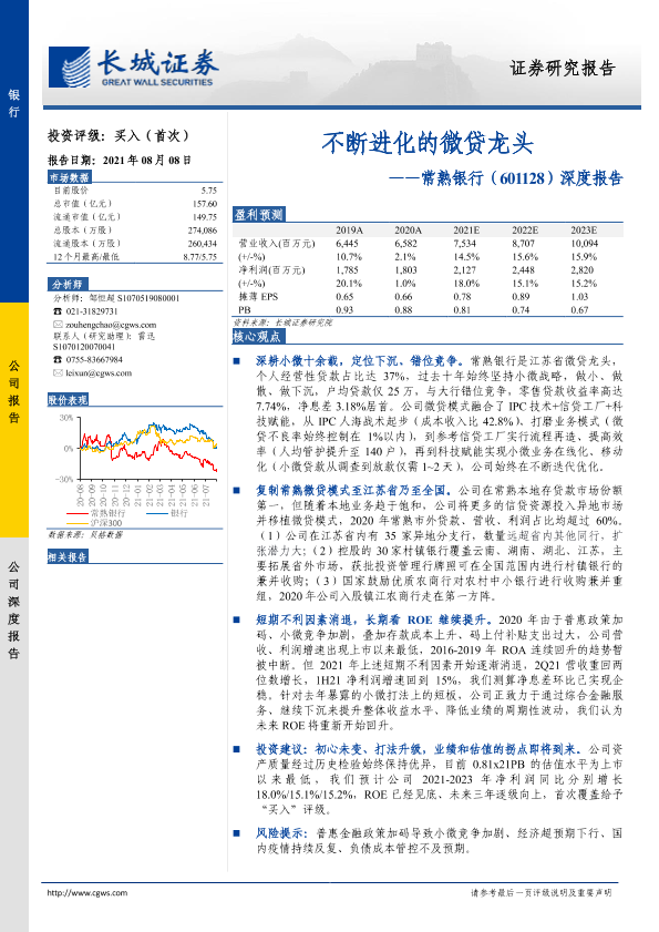 【长城证券】【20210808】20210808-长城证券-常熟银行-601128.SH-深度报告:不断进化的微贷龙头-23页