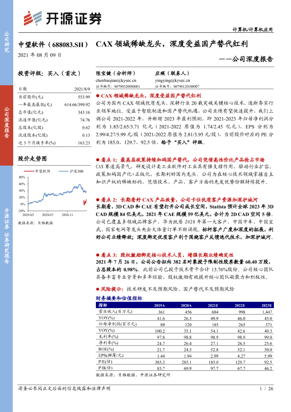 【开源证券】【20210809】中望软件公司深度报告:CAX领域稀缺龙头,深度受益国产替代红利-26页