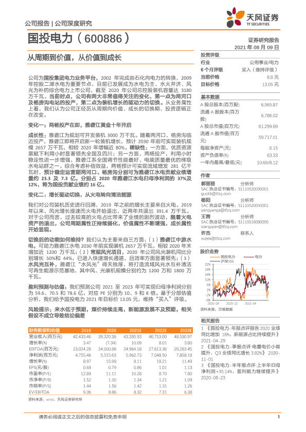 天风证券 电力热力燃气水生产 2021年 PDF 3.45 MB
