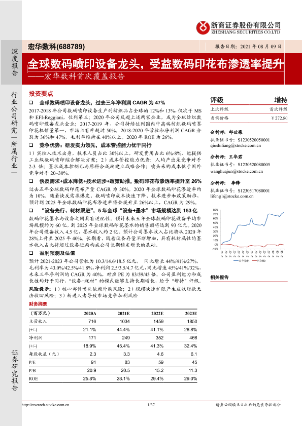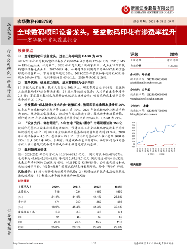 【浙商证券】【20210809】宏华数科首次覆盖报告:全球数码喷印设备龙头,受益数码印花布渗透率提升-37页