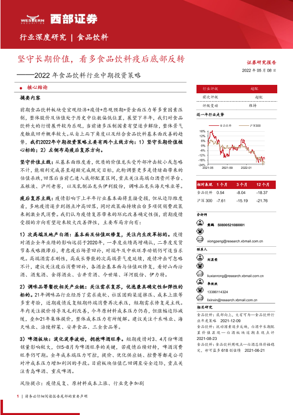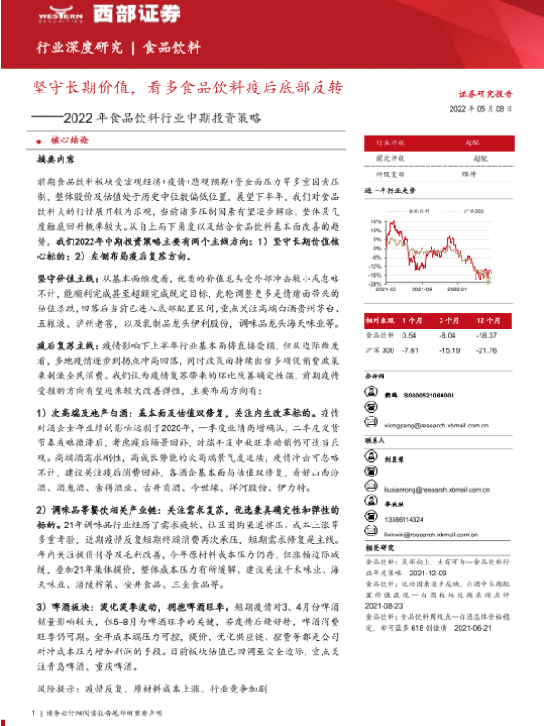 【西部证券】【20220508】2022年食品饮料行业中期投资策略:坚守长期价值,看多食品饮料疫后底部反转-53页