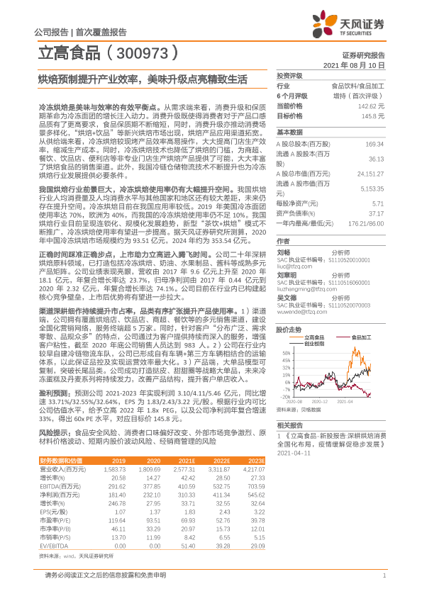 【天风证券】【20210810】20210810-天风证券-立高食品-300973.SZ-烘焙预制提升产业效率,美味升级点亮精致生活-36页