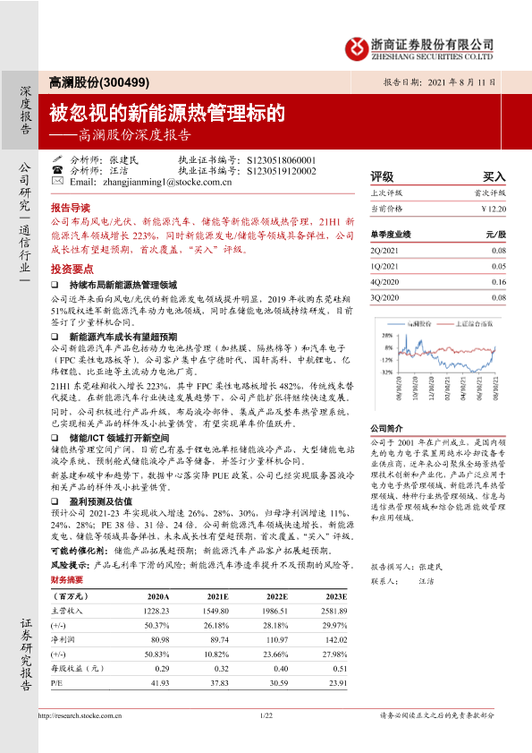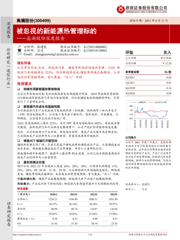 【浙商证券】【20210811】高澜股份深度报告:被忽视的新能源热管理标的-22页