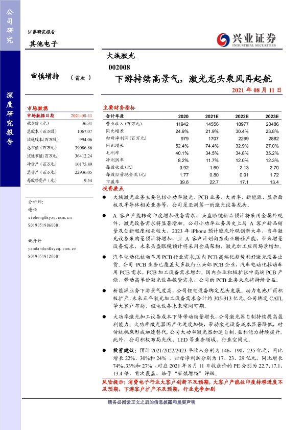 【兴业证券】【20210811】下游持续高景气,激光龙头乘风再起航-36页
