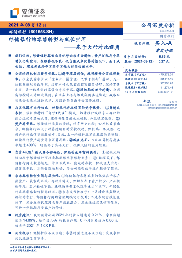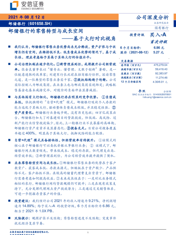 【安信证券】【20210812】邮储银行的零售转型与成长空间——基于大行对比视角-38页