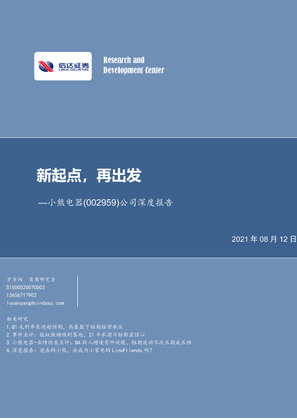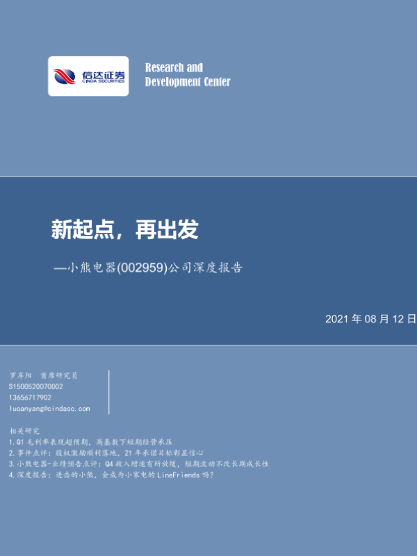 【信达证券】【20210812】20210812-信达证券-小熊电器-002959.SZ-公司深度报告:新起点,再出发-27页