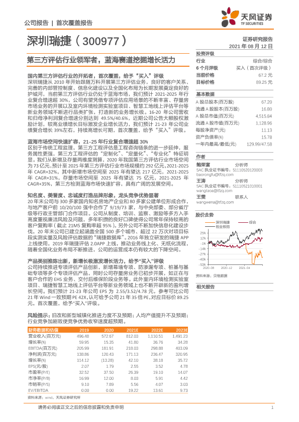 【天风证券】【20210812】深圳瑞捷-300977.SZ-第三方评估行业领军者,蓝海赛道挖掘增长活力-26页