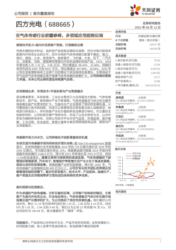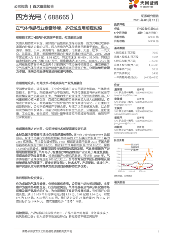 【天风证券】【20210813】在气体传感行业崭露峥嵘,多领域应用前程似锦-35页