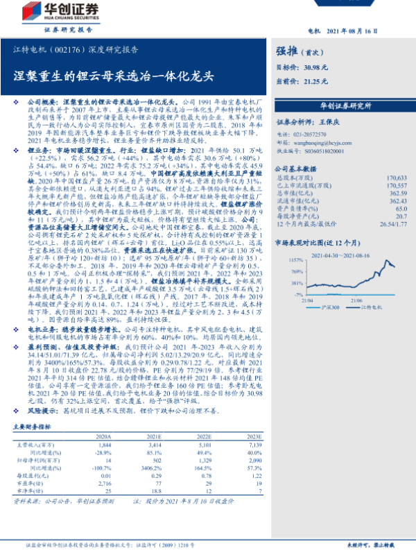【华创证券】【20210816】20210816-华创证券-江特电机-002176.SZ-深度研究报告:涅槃重生的锂云母采选冶一体化龙头-30页