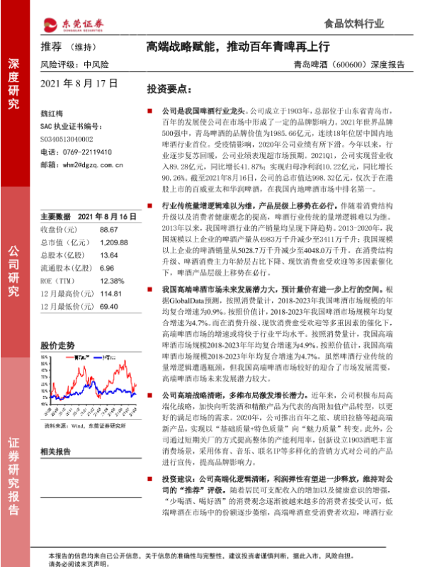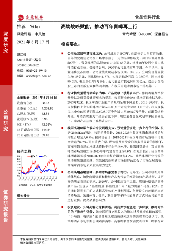 【东莞证券】【20210817】20210817-东莞证券-青岛啤酒-600600.SH-深度报告:高端战略赋能,推动百年青啤再上行-36页