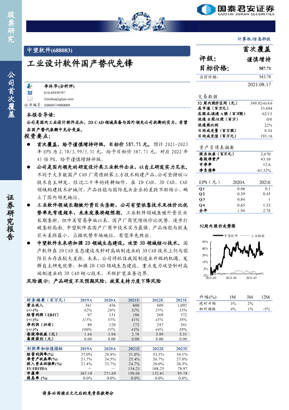 【国泰君安证券】【20210817】中望软件(688083) - 工业设计软件国产替代先锋-20页